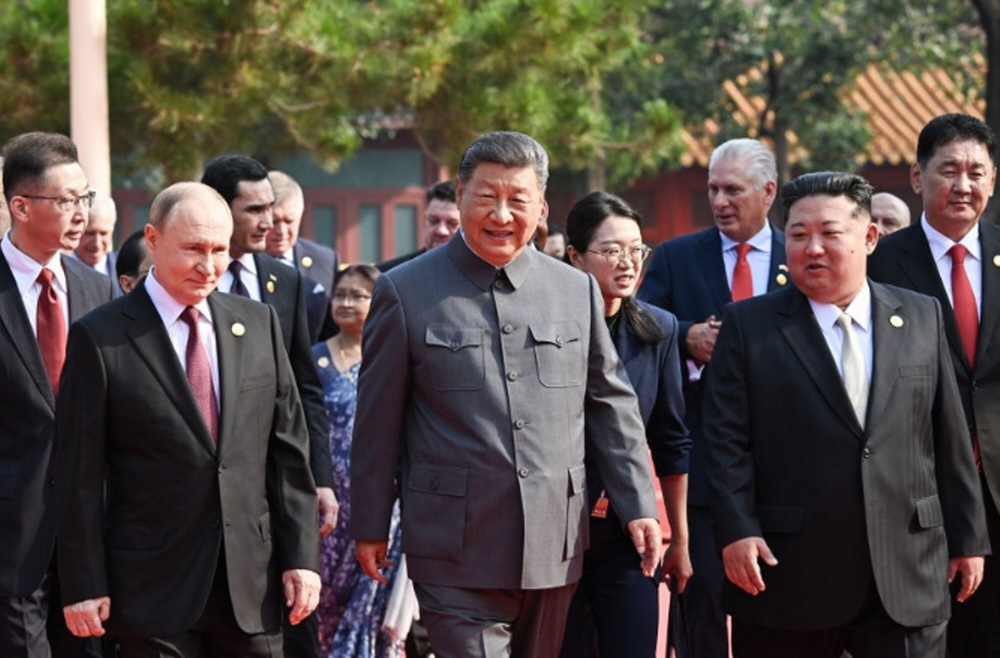 중국의 항일전쟁 승리 80주년을 기념하는 전승절 열병식에서 북한·중국·러시아 정상이 톈안먼 성루에 나란히 올라 북·중·러 연대를 과시했다. 북한 지도자가 중국 국가주석, 러시아 대통령과 함께 공식 석상에 선 모습은 냉전 종식 후 처음 연출된 장면으로, 반미 진영의 결속을 국제사회에 드러낸 사건으로 평가되고 있다.