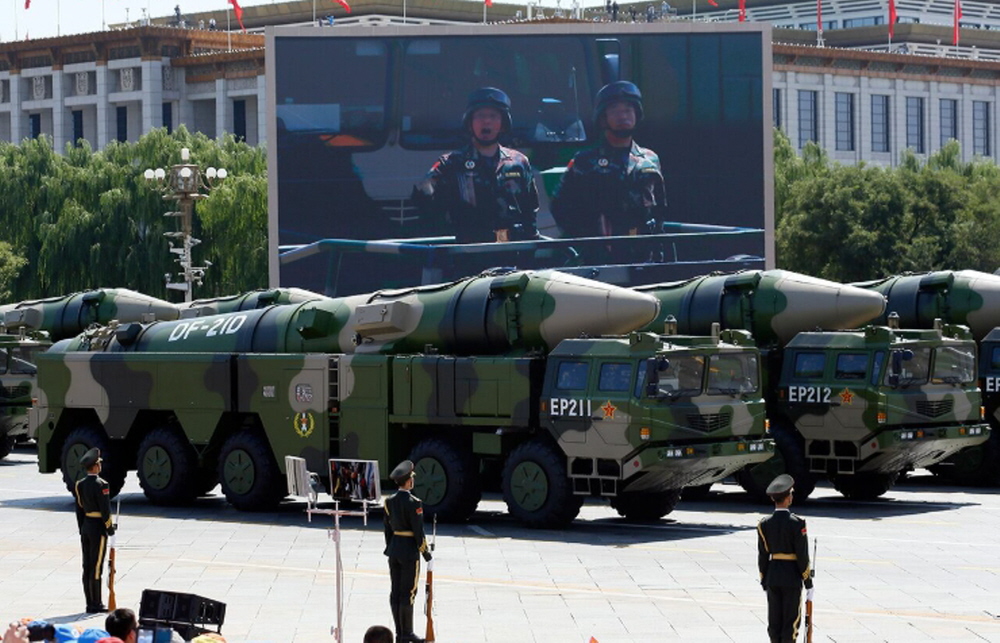이날 열병식 현장에서 중국은 전략적 메시지가 담긴 다양한 무기 체계를 선보였다. 둥펑(東風·DF) 계열 탄도미사일로는 최대 사거리 2만㎞로 전 지구를 사정권에 두는 대륙간 전략핵미사일이 첫 공개됐다. 기존 DF-5B ICBM의 개량형으로 추정되는 DF-5C, DF-41의 개량형으로 보이는 DF-61, '괌 킬러'로 불리는 DF-26의 개량형 DF-26D, 주한미군 사드(THAAD)와 일본의 SM-3 요격 체계를 무력화할 가능성이 있는 DF-17, 사거리 1만4000㎞의 ICBM DF-41 등도 모습을 보였다.